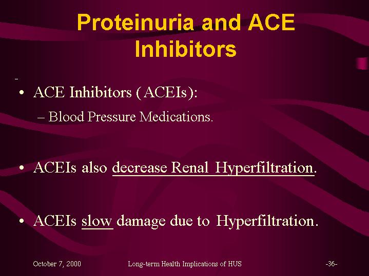 There is good evidence in other renal disease states, notably diabetes, that ACE inhibitors can slow the progression of renal disease and many nephrologists believe they may do the same in other diseases with hyperfiltration. Hyperfiltration is not dependent on the original disease. It's just a response to the loss of a certain percentage of your renal mass.