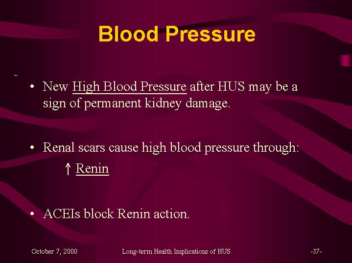 So children who have high blood pressure after HUS are often treated with ACE inhibitors and that may be protective of the kidney.